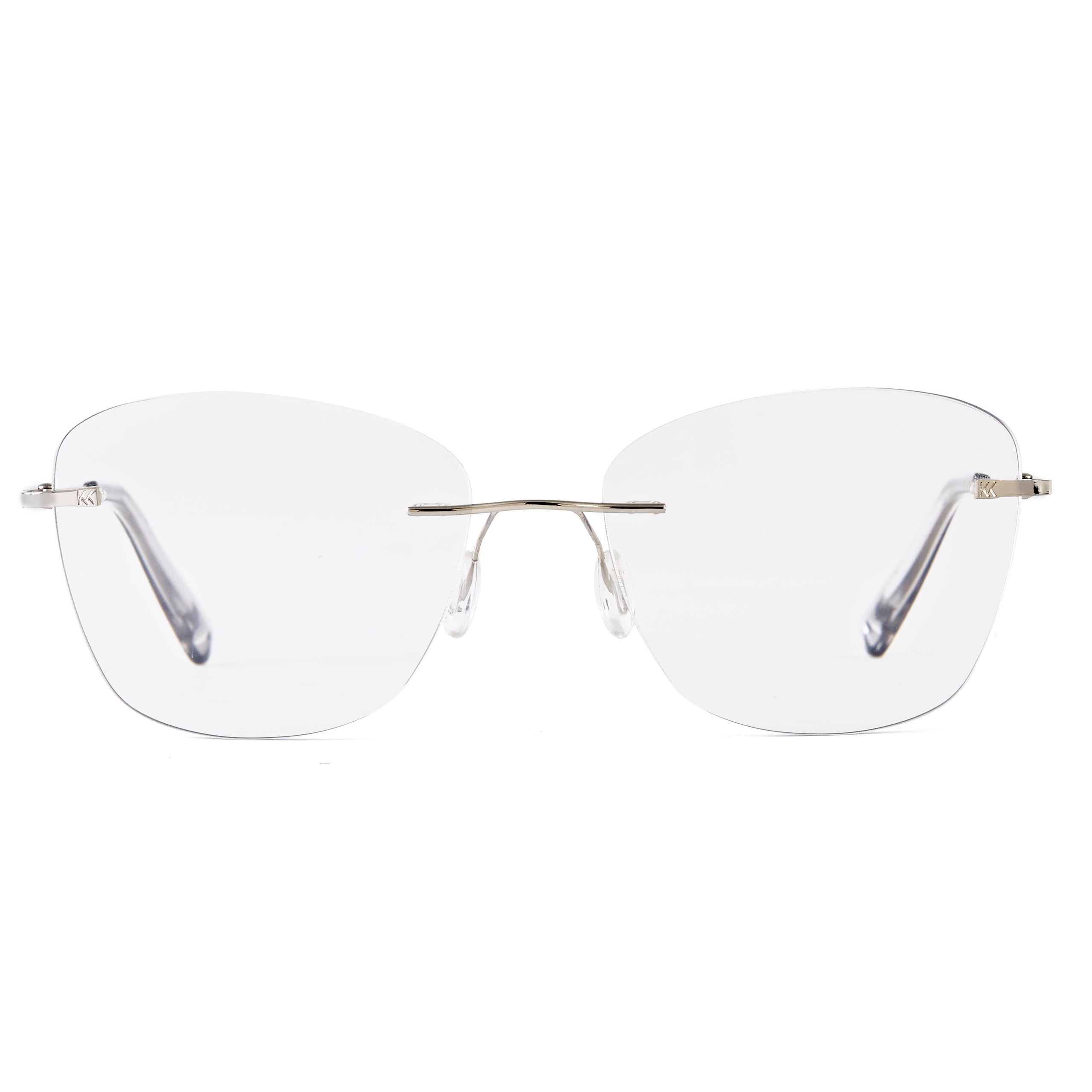 Woman wearing Mokki reading glasses and a white shirt against a beige background